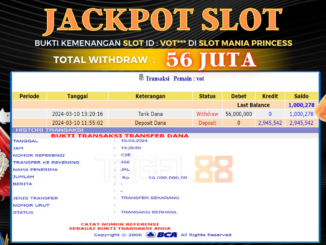 TOGEL88 JACKPOT SLOT DI SLOT MANIA PRINCESS Rp 56.000.000,- LUNAS