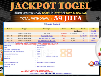 TOGEL88 JACKPOT TOGEL DI TOTO MACAU 4D Rp 59.000.000,- LUNAS