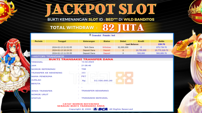 TOGEL88 JACKPOT SLOT DI WILD BANDITOS Rp 82.000.000,- LUNAS