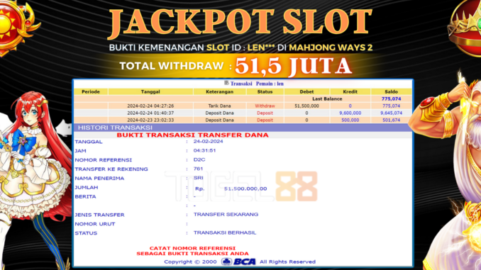 TOGEL88 JACKPOT SLOT DI MAHJONG WAYS 2 Rp 51.500.000,- LUNAS