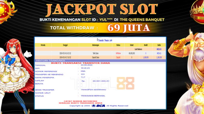 TOGEL88 JACKPOT SLOT DI THE QUEENS BANQUET Rp 69.000.000,- LUNAS
