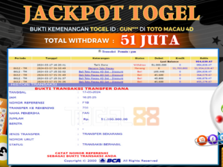 TOGEL88 JACKPOT TOGEL DI TOTO MACAU 4D Rp 75.000.000,- LUNAS MEMBER TOGEL88 MENERIMA PELUNASAN KEMENANGAN JACKPOT TOGEL DI TOTO MACAU 4D Rp 75.000.000,- LUNAS “TOGEL88 […]