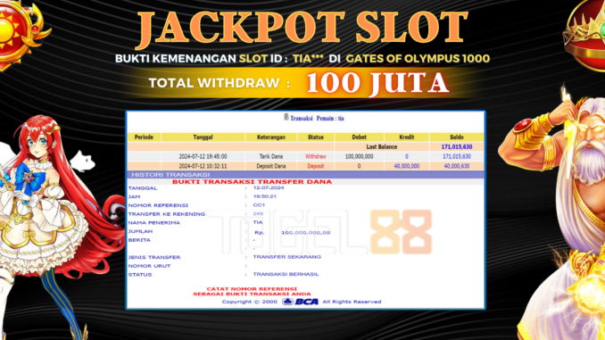 TOGEL88 mengucapkan selamat kepada user id : TIA** yang telah berhasil mendapatkan jackpot pada permainan SLOT DI GATES OF OLYMPUS. Kemenangan sebesar Rp 100.000.000,-. telah dibayarkan LUNAS oleh pihak TOGEL88 kepada pemilik user id setelah yang bersangkutan mengisi formulir withdraw. Proses pencairan dana berlangsung sangat cepat hanya dalam waktu 5-10 menit sudah berada dalam rekening pemilik user id. Bukti transfer yang dapat anda lihat adalah bukti SAH / VALID yang langsung di dapatkan melalui bukti transaksi dari Bank yang digunakan untuk pengiriman dana pada rekening pemilik user id. Terima kasih kami sampaikan kepada para pengguna setia TOGEL88 yang telah menggunakan situs kami, sebagai Bandar Terpercaya yang pastinya membayar semua kemenangan member hingga lunas. Apakah TOGEL88 PENIPU ? Reputasi “TOGEL88 TERPERCAYA” sudah sangat melekat. puluhan hingga ratusan ribu pengguna setia TOGEL88 tetap menggunakan situs terbesar dan terbaik di Indonesia ini. Hapus rasa was-was dan khawatir anda, kemenangan anda berapapun PASTI dibayarkan hingga lunas.