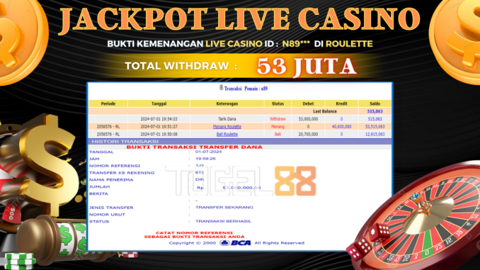 TOGEL88 JACKPOT LIVE CASINO DI ROULLETE Rp 53.000.000,- LUNAS