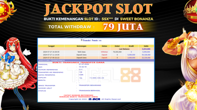 TOGEL88 mengucapkan selamat kepada user id : SSX*** yang telah berhasil mendapatkan jackpot pada permainan SLOT DI SWEET BONANZA. Kemenangan sebesar Rp 79.000.000,-. telah dibayarkan LUNAS oleh pihak TOGEL88 kepada pemilik user id setelah yang bersangkutan mengisi formulir withdraw. Proses pencairan dana berlangsung sangat cepat hanya dalam waktu 5-10 menit sudah berada dalam rekening pemilik user id. Bukti transfer yang dapat anda lihat adalah bukti SAH / VALID yang langsung di dapatkan melalui bukti transaksi dari Bank yang digunakan untuk pengiriman dana pada rekening pemilik user id. Terima kasih kami sampaikan kepada para pengguna setia TOGEL88 yang telah menggunakan situs kami, sebagai Bandar Terpercaya yang pastinya membayar semua kemenangan member hingga lunas. Apakah TOGEL88 PENIPU ? Reputasi “TOGEL88 TERPERCAYA” sudah sangat melekat. puluhan hingga ratusan ribu pengguna setia TOGEL88 tetap menggunakan situs terbesar dan terbaik di Indonesia ini. Hapus rasa was-was dan khawatir anda, kemenangan anda berapapun PASTI dibayarkan hingga lunas.