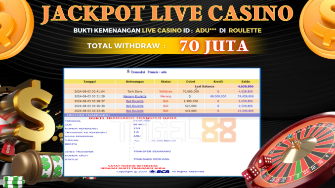 TOGEL88 JACKPOT LIVE CASINO DI ROULETTE Rp 70.000.000,- LUNAS