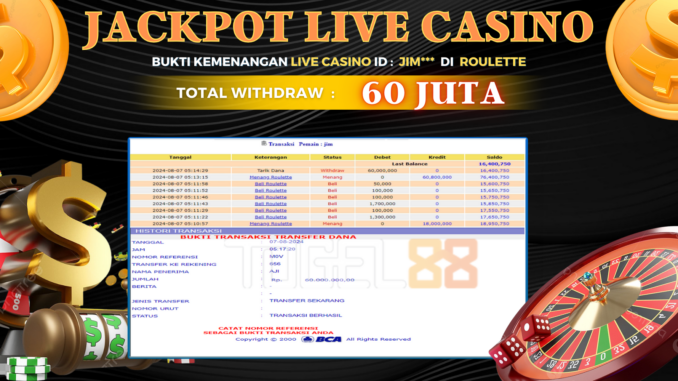 TOGEL88 JACKPOT LIVE CASINO DI ROULETTE Rp 60.000.000,- LUNAS