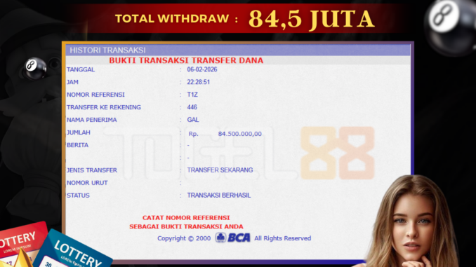 TOGEL88 mengucapkan selamat kepada user id : ZEN*** yang telah berhasil mendapatkan jackpot pada permainan TOGEL DI TOTOMACAU 5D. Kemenangan sebesar Rp 84.500.000,-. telah dibayarkan LUNAS oleh pihak TOGEL88 kepada pemilik user id setelah yang bersangkutan mengisi formulir withdraw. Proses pencairan dana berlangsung sangat cepat hanya dalam waktu 5-10 menit sudah berada dalam rekening pemilik user id. Bukti transfer yang dapat anda lihat adalah bukti SAH / VALID yang langsung di dapatkan melalui bukti transaksi dari Bank yang digunakan untuk pengiriman dana pada rekening pemilik user id. Terima kasih kami sampaikan kepada para pengguna setia TOGEL88 yang telah menggunakan situs kami, sebagai Bandar Terpercaya yang pastinya membayar semua kemenangan member hingga lunas. Apakah TOGEL88 PENIPU ? Reputasi “TOGEL88 TERPERCAYA” sudah sangat melekat. puluhan hingga ratusan ribu pengguna setia TOGEL88 tetap menggunakan situs terbesar dan terbaik di Indonesia ini. Hapus rasa was-was dan khawatir anda, kemenangan anda berapapun PASTI dibayarkan hingga lunas.