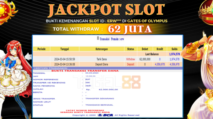 TOGEL88 JACKPOT SLOT DI GATES OF OLYMPUS Rp 62.000.000,- LUNAS