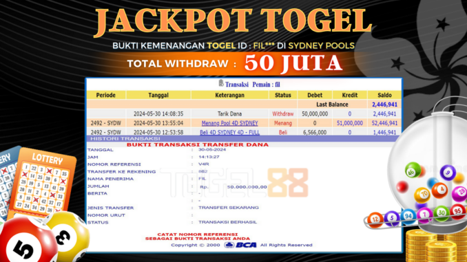 MEMBER TOGEL88 MENERIMA PELUNASAN KEMENANGAN JACKPOT TOGEL DI SYDNEY POOLS Rp 50.000.000,- LUNAS