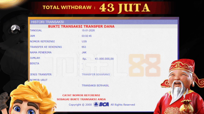 TOGEL88 mengucapkan selamat kepada user id : OJA*** yang telah berhasil mendapatkan jackpot pada permainan SLOT DI ALMIGHTY ZEUS EMPIRE. Kemenangan sebesar Rp 43.000.000,-. telah dibayarkan LUNAS oleh pihak TOGEL88 kepada pemilik user id setelah yang bersangkutan mengisi formulir withdraw. Proses pencairan dana berlangsung sangat cepat hanya dalam waktu 5-10 menit sudah berada dalam rekening pemilik user id. Bukti transfer yang dapat anda lihat adalah bukti SAH / VALID yang langsung di dapatkan melalui bukti transaksi dari Bank yang digunakan untuk pengiriman dana pada rekening pemilik user id. Terima kasih kami sampaikan kepada para pengguna setia TOGEL88 yang telah menggunakan situs kami, sebagai Bandar Terpercaya yang pastinya membayar semua kemenangan member hingga lunas. Apakah TOGEL88 PENIPU ? Reputasi “TOGEL88 TERPERCAYA” sudah sangat melekat. puluhan hingga ratusan ribu pengguna setia TOGEL88 tetap menggunakan situs terbesar dan terbaik di Indonesia ini. Hapus rasa was-was dan khawatir anda, kemenangan anda berapapun PASTI dibayarkan hingga lunas.