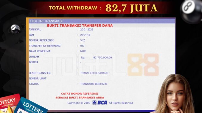TOGEL88 mengucapkan selamat kepada user id : NUR*** yang telah berhasil mendapatkan jackpot pada permainan TOGEL DI HONGKONG LOTTO. Kemenangan sebesar Rp 82.750.000,-. telah dibayarkan LUNAS oleh pihak TOGEL88 kepada pemilik user id setelah yang bersangkutan mengisi formulir withdraw. Proses pencairan dana berlangsung sangat cepat hanya dalam waktu 5-10 menit sudah berada dalam rekening pemilik user id. Bukti transfer yang dapat anda lihat adalah bukti SAH / VALID yang langsung di dapatkan melalui bukti transaksi dari Bank yang digunakan untuk pengiriman dana pada rekening pemilik user id. Terima kasih kami sampaikan kepada para pengguna setia TOGEL88 yang telah menggunakan situs kami, sebagai Bandar Terpercaya yang pastinya membayar semua kemenangan member hingga lunas. Apakah TOGEL88 PENIPU ? Reputasi “TOGEL88 TERPERCAYA” sudah sangat melekat. puluhan hingga ratusan ribu pengguna setia TOGEL88 tetap menggunakan situs terbesar dan terbaik di Indonesia ini. Hapus rasa was-was dan khawatir anda, kemenangan anda berapapun PASTI dibayarkan hingga lunas.