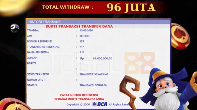 TOGEL88 mengucapkan selamat kepada user id : RIS*** yang telah berhasil mendapatkan jackpot pada permainan LIVE CASINO DI ROULETTE 2 – FAST . Kemenangan sebesar Rp 96.000.000,-. telah dibayarkan LUNAS oleh pihak TOGEL88 kepada pemilik user id setelah yang bersangkutan mengisi formulir withdraw. Proses pencairan dana berlangsung sangat cepat hanya dalam waktu 5-10 menit sudah berada dalam rekening pemilik user id. Bukti transfer yang dapat anda lihat adalah bukti SAH / VALID yang langsung di dapatkan melalui bukti transaksi dari Bank yang digunakan untuk pengiriman dana pada rekening pemilik user id. Terima kasih kami sampaikan kepada para pengguna setia TOGEL88 yang telah menggunakan situs kami, sebagai Bandar Terpercaya yang pastinya membayar semua kemenangan member hingga lunas. Apakah TOGEL88 PENIPU ? Reputasi “TOGEL88 TERPERCAYA” sudah sangat melekat. puluhan hingga ratusan ribu pengguna setia TOGEL88 tetap menggunakan situs terbesar dan terbaik di Indonesia ini. Hapus rasa was-was dan khawatir anda, kemenangan anda berapapun PASTI dibayarkan hingga lunas.
