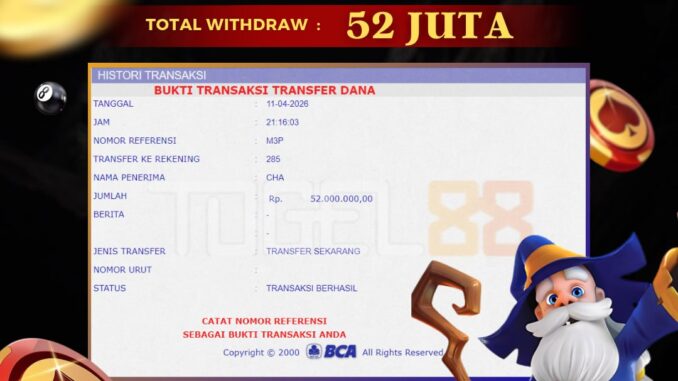 TOGEL88 mengucapkan selamat kepada user id : CHA*** yang telah berhasil mendapatkan jackpot pada permainan LIVE CASINO DI GONG BALL JITU. Kemenangan sebesar Rp 52.000.000,-. telah dibayarkan LUNAS oleh pihak TOGEL88 kepada pemilik user id setelah yang bersangkutan mengisi formulir withdraw. Proses pencairan dana berlangsung sangat cepat hanya dalam waktu 5-10 menit sudah berada dalam rekening pemilik user id. Bukti transfer yang dapat anda lihat adalah bukti SAH / VALID yang langsung di dapatkan melalui bukti transaksi dari Bank yang digunakan untuk pengiriman dana pada rekening pemilik user id. Terima kasih kami sampaikan kepada para pengguna setia TOGEL88 yang telah menggunakan situs kami, sebagai Bandar Terpercaya yang pastinya membayar semua kemenangan member hingga lunas. Apakah TOGEL88 PENIPU ? Reputasi “TOGEL88 TERPERCAYA” sudah sangat melekat. puluhan hingga ratusan ribu pengguna setia TOGEL88 tetap menggunakan situs terbesar dan terbaik di Indonesia ini. Hapus rasa was-was dan khawatir anda, kemenangan anda berapapun PASTI dibayarkan hingga lunas.