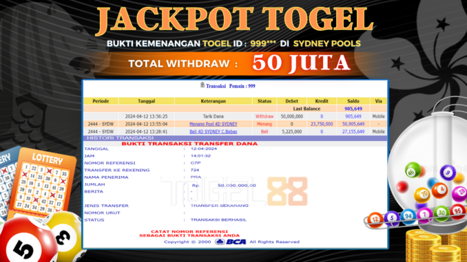 TOGEL88 JACKPOT TOGEL DI SYDNEY POOLS Rp 50.000.000,- LUNAS