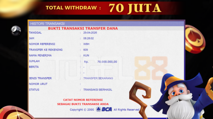 TOGEL88 mengucapkan selamat kepada user id : HIL*** yang telah berhasil mendapatkan jackpot pada permainan JACKPOT LIVE CASINO DI 24D SPIN. Kemenangan sebesar Rp 70.000.000,-. telah dibayarkan LUNAS oleh pihak TOGEL88 kepada pemilik user id setelah yang bersangkutan mengisi formulir withdraw. Proses pencairan dana berlangsung sangat cepat hanya dalam waktu 5-10 menit sudah berada dalam rekening pemilik user id. Bukti transfer yang dapat anda lihat adalah bukti SAH / VALID yang langsung di dapatkan melalui bukti transaksi dari Bank yang digunakan untuk pengiriman dana udenlandske casinoer uden nemid pada rekening pemilik user id. Terima kasih kami sampaikan kepada para pengguna setia TOGEL88 yang telah menggunakan situs kami, sebagai Bandar Terpercaya yang pastinya membayar semua kemenangan member hingga fast paying casinos lunas. Apakah TOGEL88 PENIPU ? Reputasi “TOGEL88 TERPERCAYA” sudah sangat melekat. puluhan hingga ratusan ribu pengguna setia TOGEL88 tetap menggunakan udenlandske casinoer uden nemid situs terbesar dan terbaik di Indonesia ini. Hapus rasa was-was dan khawatir anda, kemenangan anda berapapun PASTI dibayarkan hingga lunas.